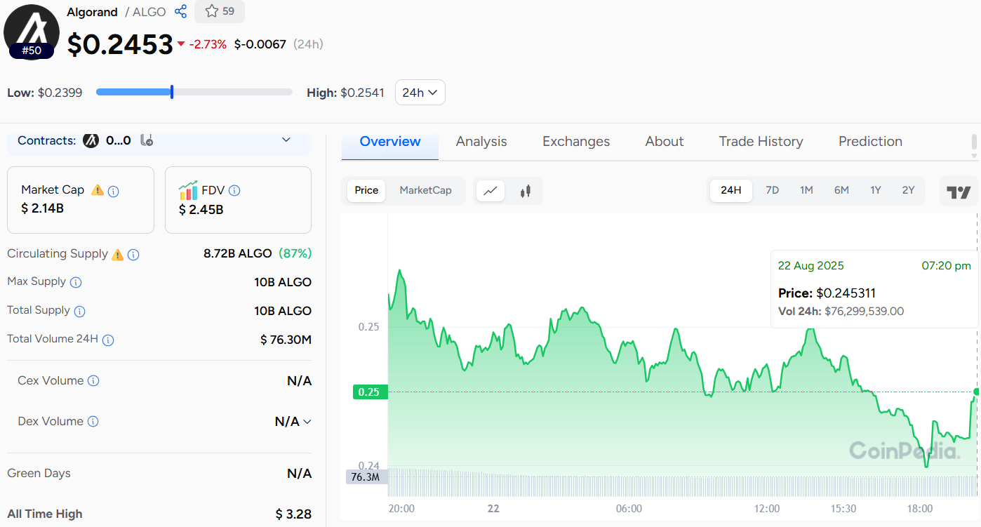 Currently, the Algo price is $0.2453 with a 24-hour trading volume of $76.30 million. Despite being down 2.73% today, our analysts believe upside momentum could be building.